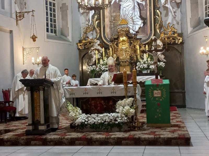 Drugiego dnia wizytacji ks. biskup Rudolf spotkał się z ojcem proboszczem Mariuszem Legieżyńskim, podpisał dokumenty oraz księgi parafialne a następnie sprawował nabożeństwo ku czci Bożego Miłosierdzia, podczas którego został udzielony sakrament chorych seniorom naszej parafii: osobom chorym i cierpiącym. Po zakończonym nabożeństwie spotkania z księdzem biskupem miały grupy parafialne, ministranci i kandydaci do sakramentu bierzmowania.