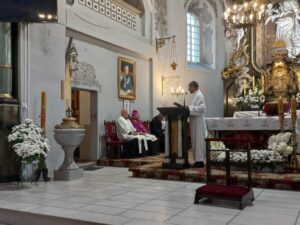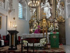 Po zakończonym sprawozdaniu rozpoczęła się Eucharystia, którą koncelebrowali wszyscy obecni w klasztorze współbracia oraz rodak, ks. Robert Sadlak. Mszy przewodniczył i homilię wygłosił ks. biskup Rudolf.